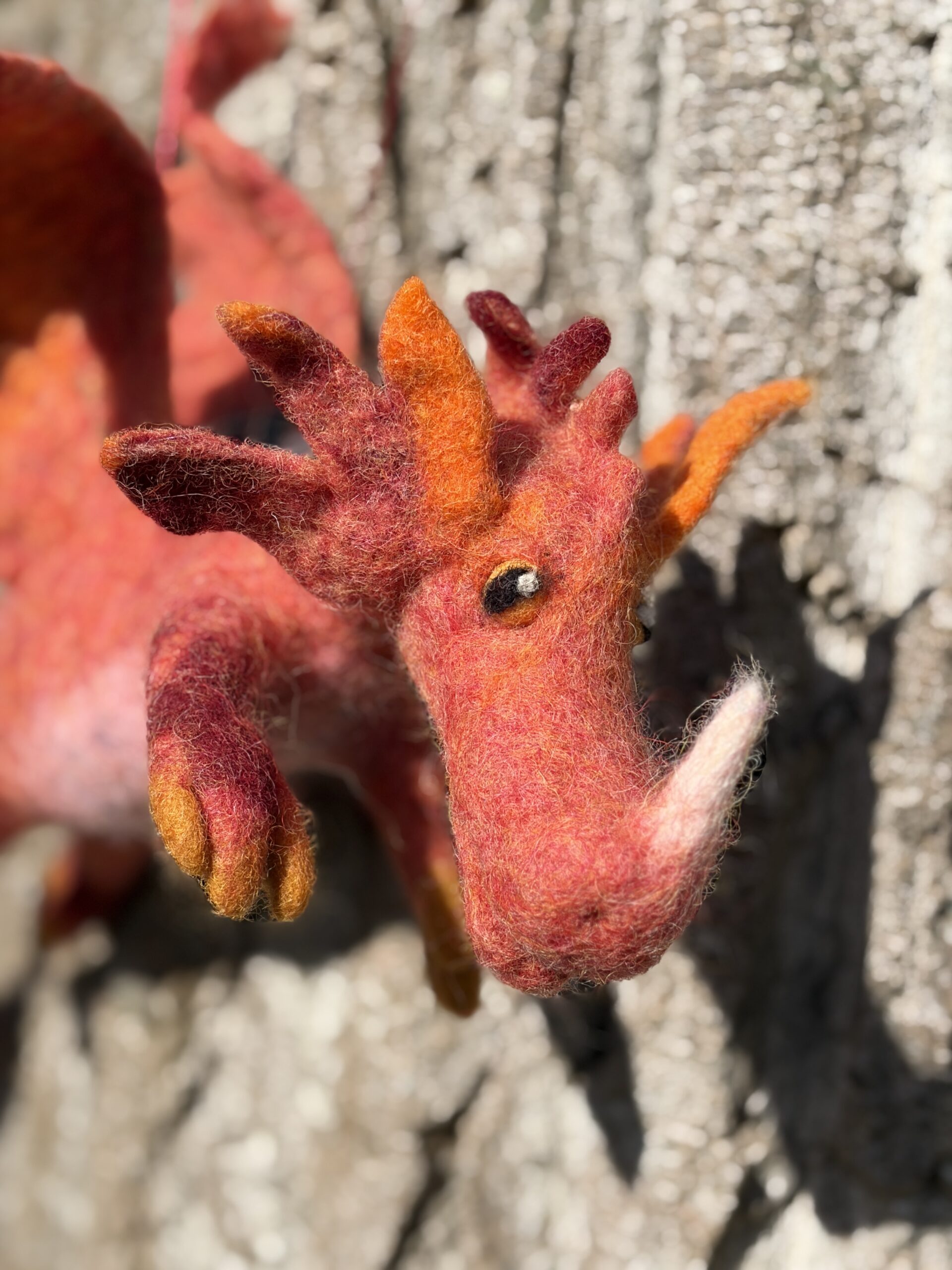 Uniek en handgemaakt, met veel uit een stuk gevilte details als stekels en nagels.